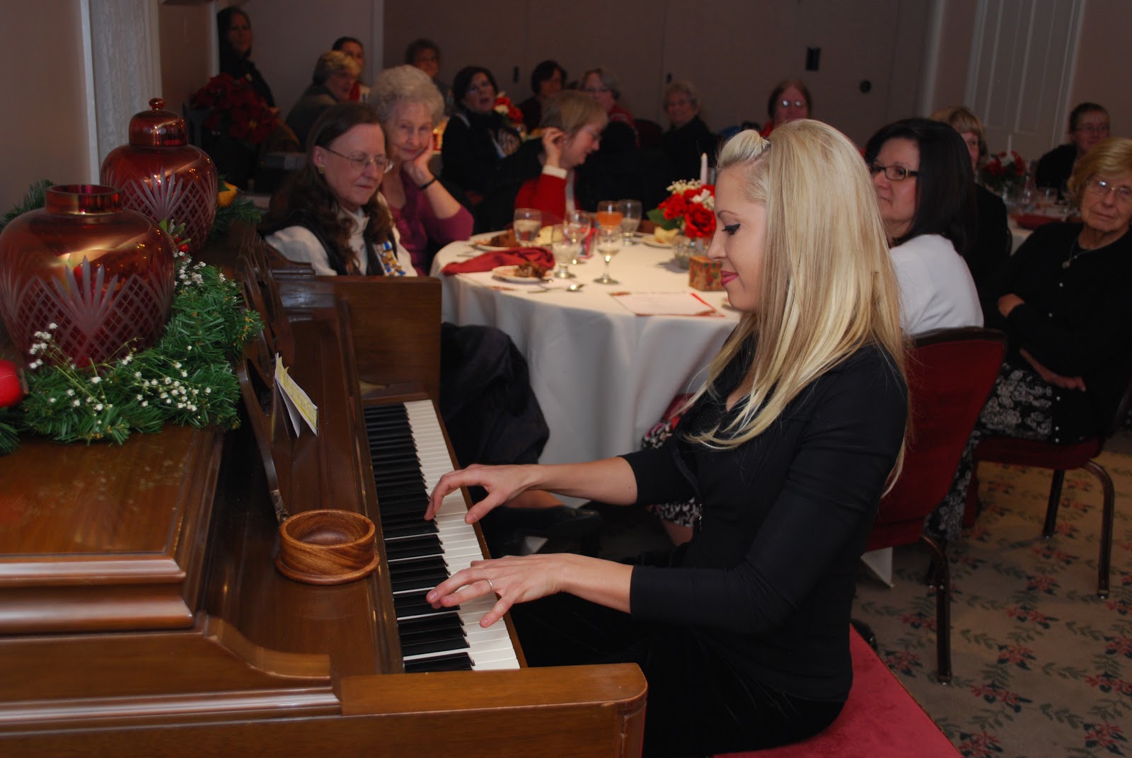 Dec. 8, 2012, was our annual Christmas Party at the Lion House sponsored by the Utah State Officer’s Club. Serving with Christine Schultz, President are Jane Nelson Comp, Treasurer, and Lu Fischer, Secretary. We ate a delicious luncheon, listened to professional pianist, Kelsie Call, and sang Christmas Carols, accompanied by Judy Barking, State Vice Regent. It was a great time to renew friendships and meet new members.